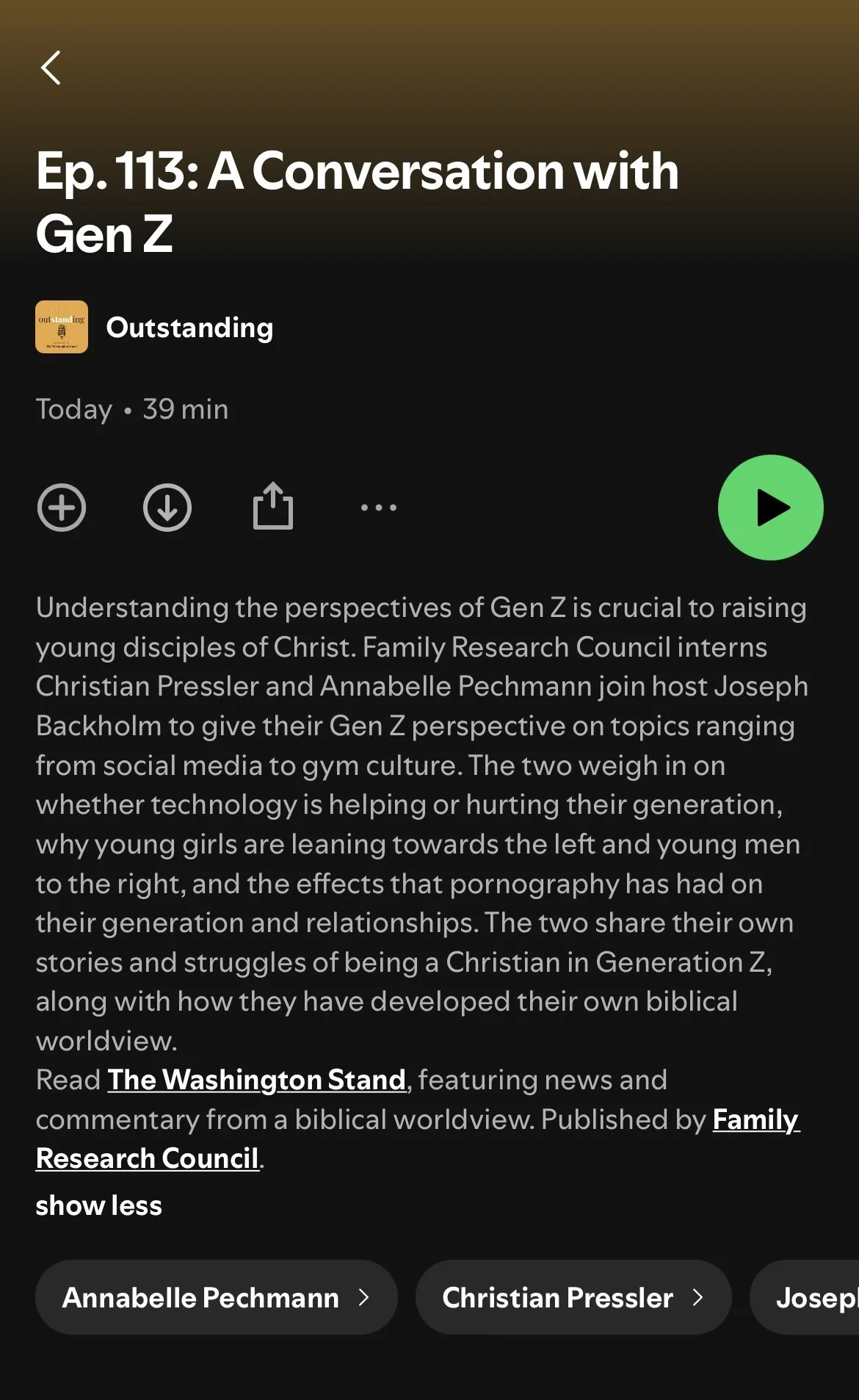 The Washington Stand Social Media Content & Podcast Summary